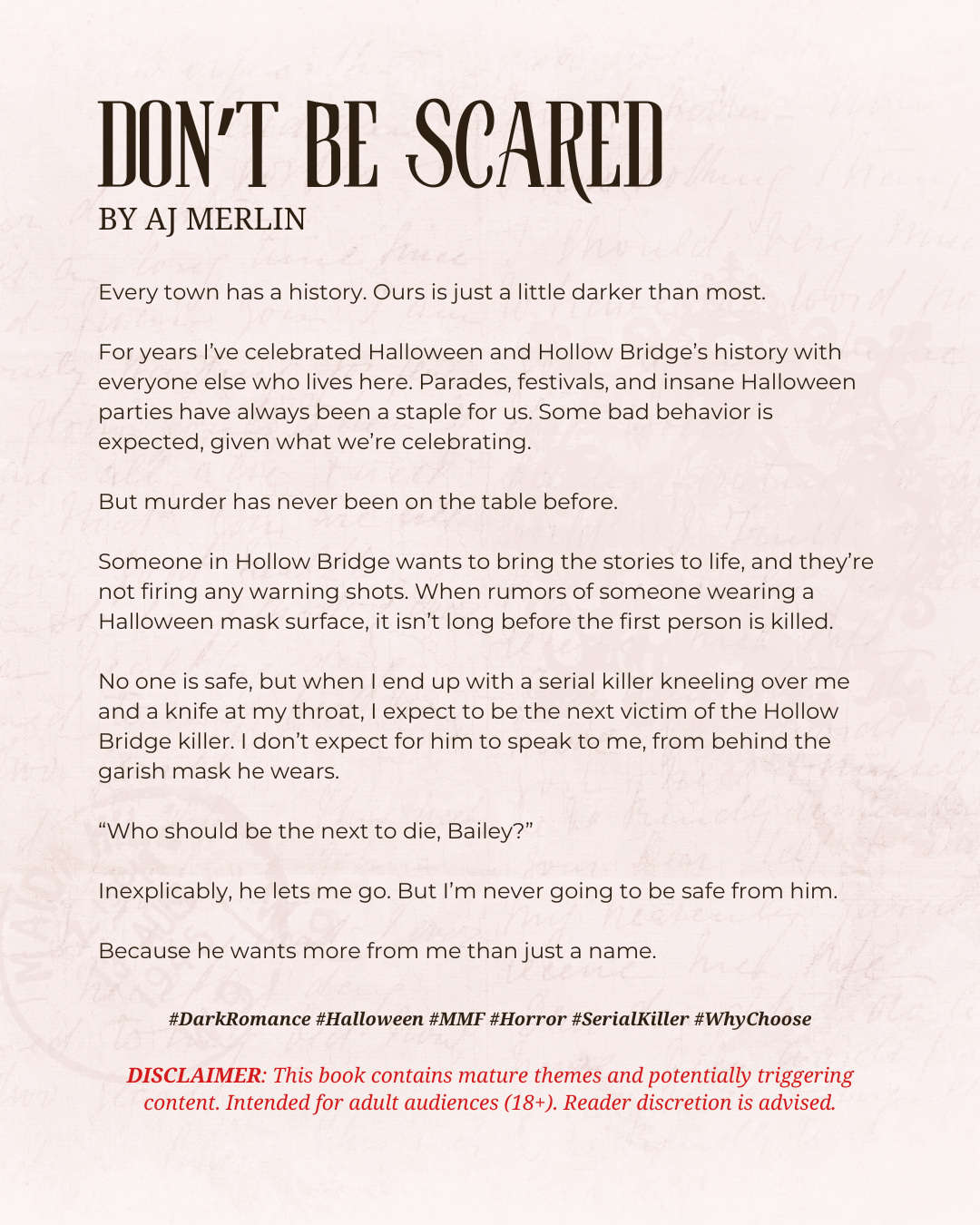 Join us Friday October 3rd at 6pm to discuss our thoughts on Don't Be Scared by AJ Merlin, our likes/dislikes, and star rating!
